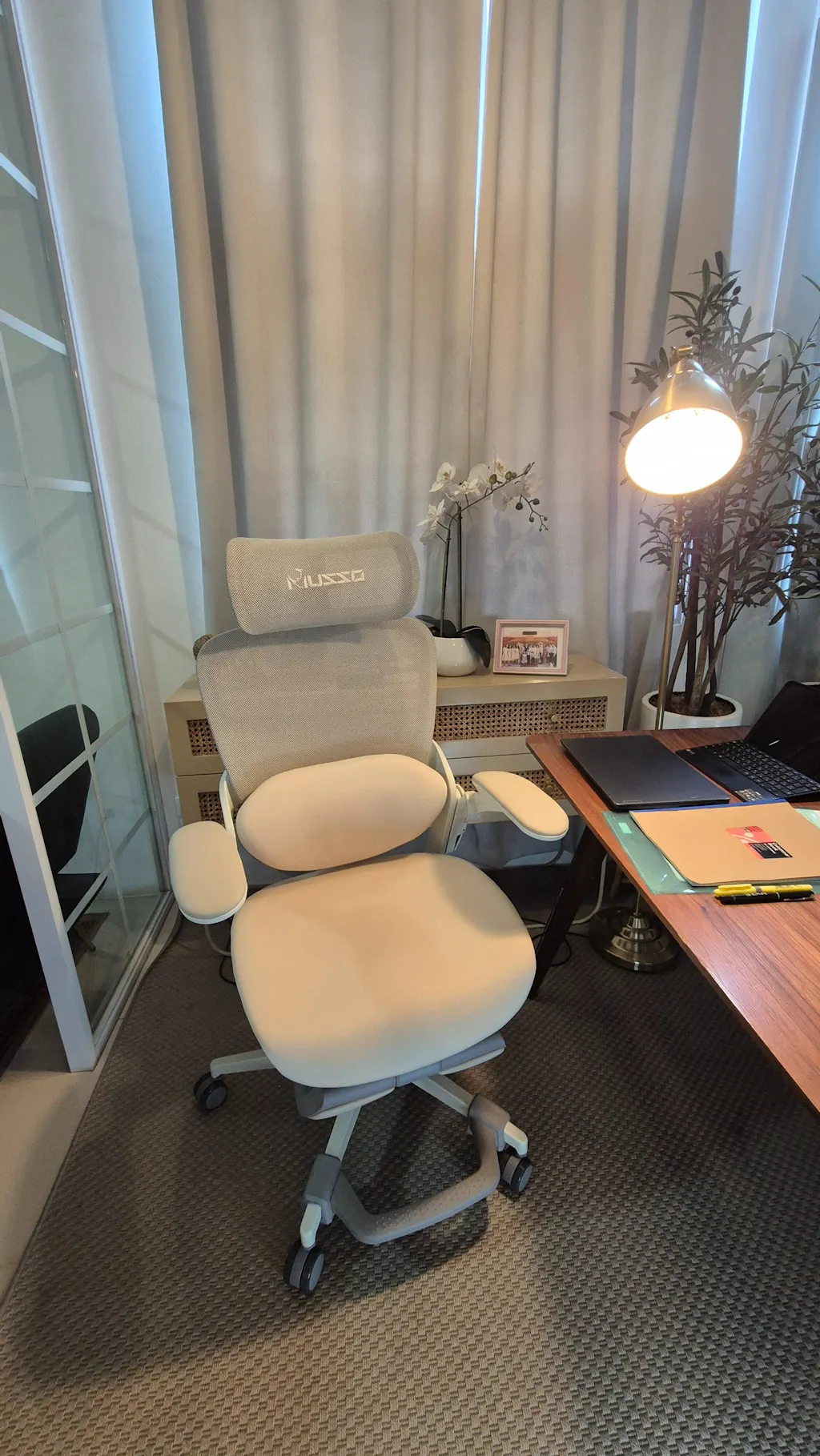 The first chair was sculpted for a woman’s frame, not a scaled-down man’s. ErgoHug™ lumbar flexes 20° to cradle the lower curve; CozyCloud™ cushioning delivers 20 % softer landings through every meeting and midnight deadline. Flip-up armrests free your desk for sketches or lattes, while four-lock recline (90-135°) invites instant recovery. Wrapped in tailored beige, grey, or blush pink, E80 proves that executive power and feminine poise can share the same seat.